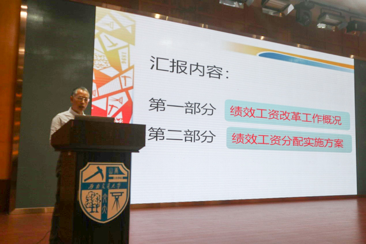 田怀文副院长以现阶段绩效工资改革工作情况入题,着重介绍了绩效工资分配的实施方案,田副院长指出:各二级单位制定本单位绩效工资分配方案,充分体现“成绩、成果、成效”导向;基础绩效工资应根据个人完成岗位职责任务的情况进行发放,未完成岗位职责任务的,应适度下浮其基础绩效发放比例; “业绩奖励”部分的发放应充分体现“成绩、成果、成效”。并鼓励各单位建立考核末位处理机制,对年度/聘期考核排名在本单位靠后的人员,应对其基础绩效工资部分较同类同级别人员予以适度扣减。对于“负面清单”事项,对存在某些情形的单位和教职工,学校和各二级单位可根据情节轻重和造成的损失、影响等情况,对其扣发部分或全部岗位责任津贴以及绩效工资。