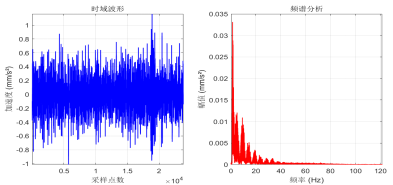 由于功率谱密度反演过程中,存在符合均匀分布的独立相位序列,故每次根据《我国高速铁路无砟轨道不平顺谱》反演得到的时序序列存在随机差异。将随机轨道谱数据粘贴到.tre文件下代入到SIMPACK平台进行仿真计算。选取3条线路的动力学信号如图所示,该信号为列车正常运行时车辆中部横向加速度信号,左侧为该信号的时域波形,右侧为该信号的频域波形。通过下图可以看出,仿真得到的列车振动信号存在差异,轨道随机不平顺对列车动力学信号的幅值和频率分布均有影响。