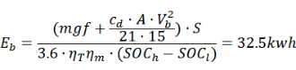 (3)对于电池而言,初步确定纯电续航里程为150km,平均车速为40km/h,根据相关的公式计算得出。