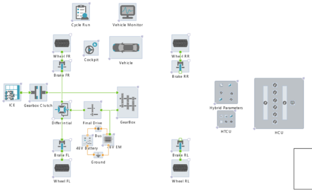 (3)熟悉AVL-cruise M工具并进行整车一维模型的建立。