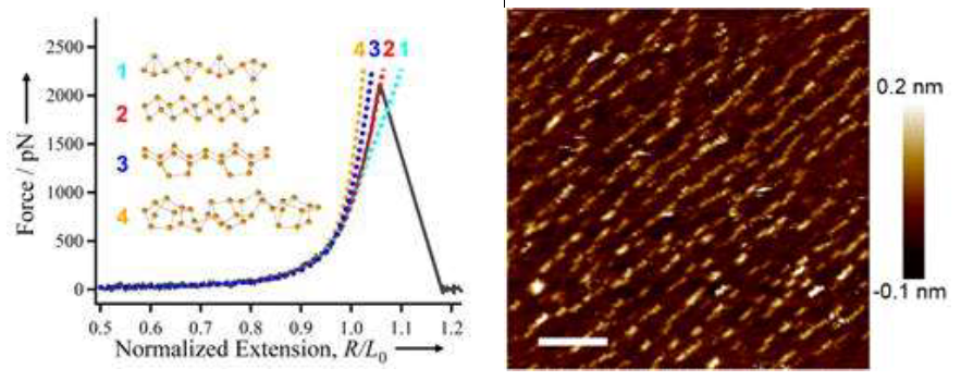 In summary, the researchers revealed experimental and theoretical calculations at the single-molecule level, revealing that a-red P is a zig-zag ladder linear polymer. This study is the first application of single-molecule force spectrum in elemental chain molecules. The strategy used in this study can be used to study other chain molecules with unclear structures.
