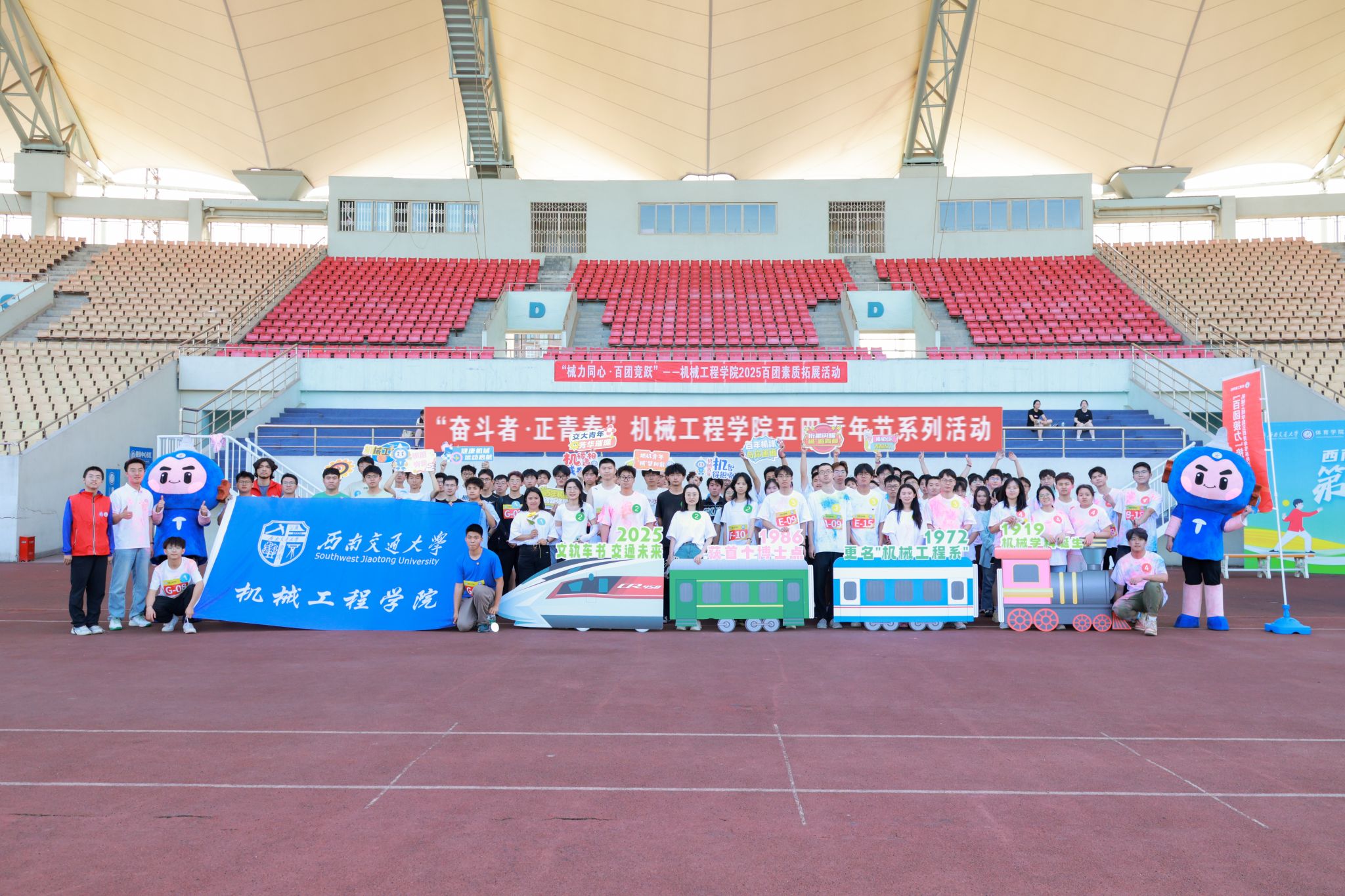 为庆祝五四青年节和迎接学校129周年校庆,完美体育·(中国)官方网站于2025年4月24日成功举办“奋斗者·正青春”五四青年节系列活动。活动包含“齿轮转动青春,星火燎原未来”迎校庆环校跑和“械力同心·百团竞跃”百团素质拓展两大特色项目。学院党委副书记沙晓雪、团委书记何蕊芯、各年级辅导员以及100个团支部的100余名团员代表共同参与,以青春之名献礼校庆。