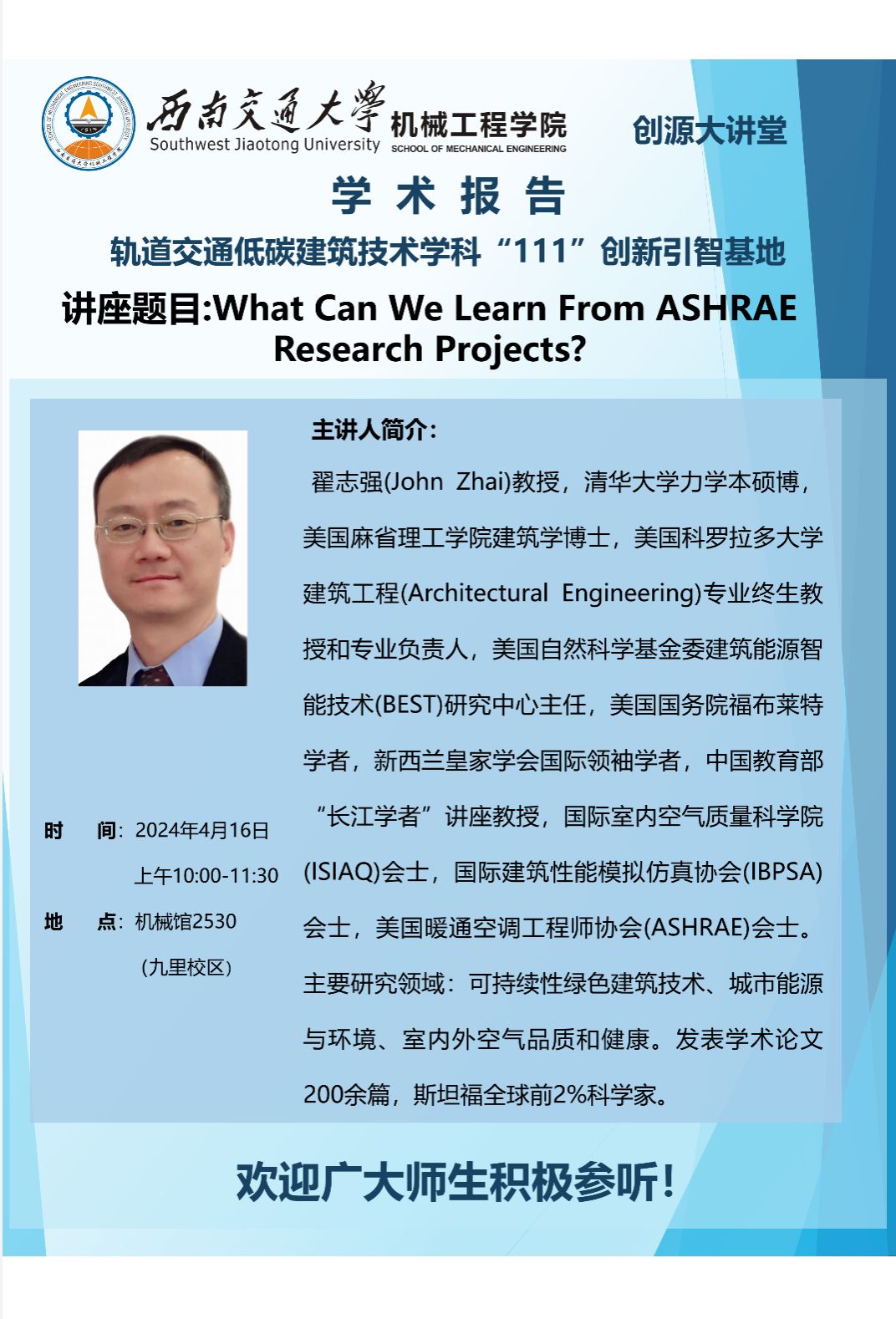 【创源大讲堂】 What Can We Learn From ASHRAE Research Projects?