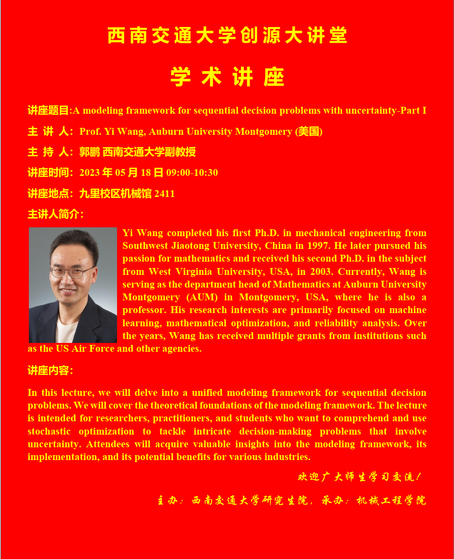 学术讲座:A modeling framework for sequential decision problems with uncertainty-Part I